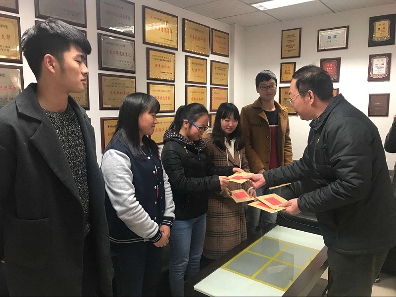 吕军书记认真询问了学生们开学来的思想情况和学习生活状况,提醒他们多注意身体健康,科学制定学习计划,鼓励他们在新的学期以更好的状态迎接学业和生活。最后吕书记将慰问金送到学生手中,叮嘱他们有困难随时找老师。