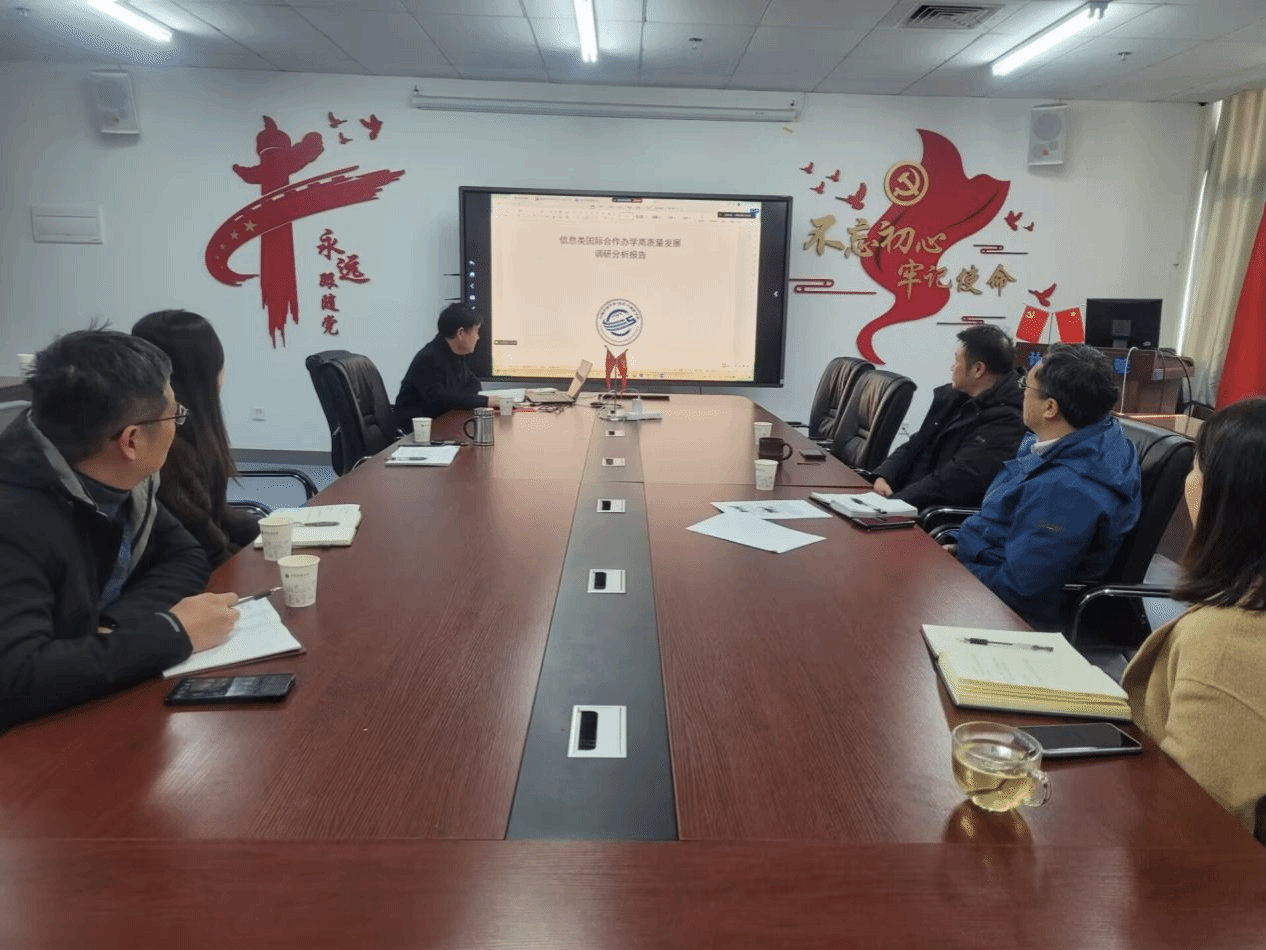 副院长陈占龙以“信息类国际合作办学高质量发展”为题,分享了其他高校信息类中外合作办学项目的典型经验与模式,并结合学院实际加强国际合作的建议。